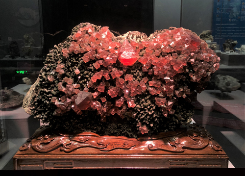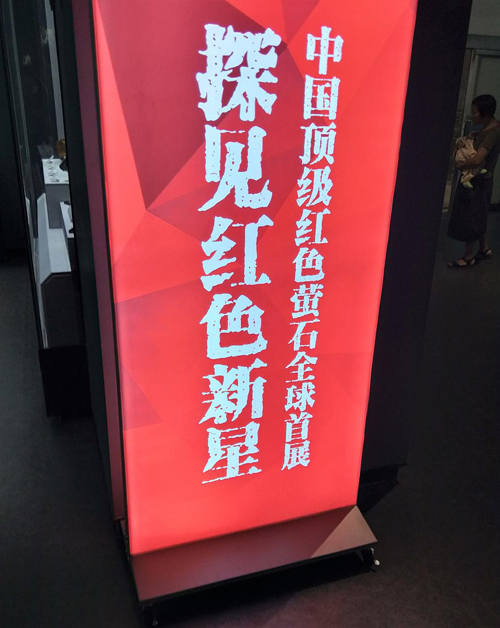 二,8月上旬,黃館長和我一起規(guī)劃國慶寶石展活動,他堅持說,要辦就要以紅色寶石為主題,迎國慶嘛,喜慶,要紅紅火火。他話音剛落,不到一個星期,8月15日,內蒙赤峰石破驚天,世界礦物王冠上的瑰寶--極品紅色螢石擺脫了黑暗,君臨天下。我和朋友立馬飛赴赤峰,而后凱旋。